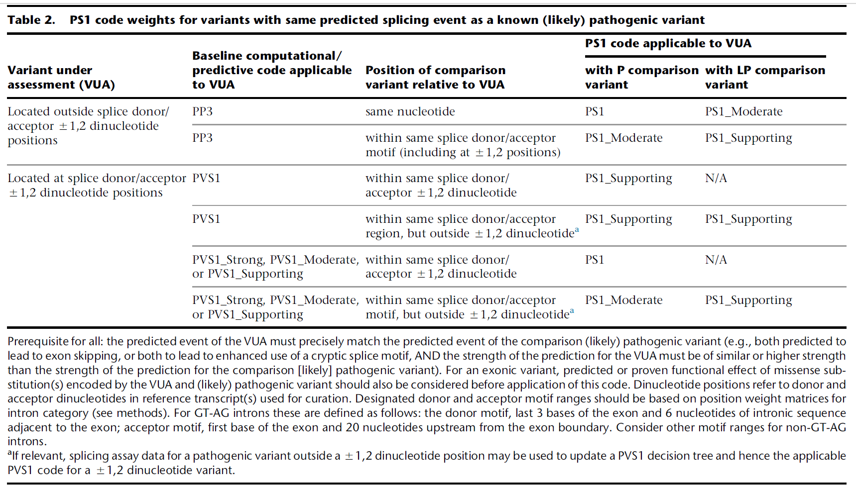 - Clarification on use of experimental RNA/splice data: PVS1, PP3, BP4, BP7